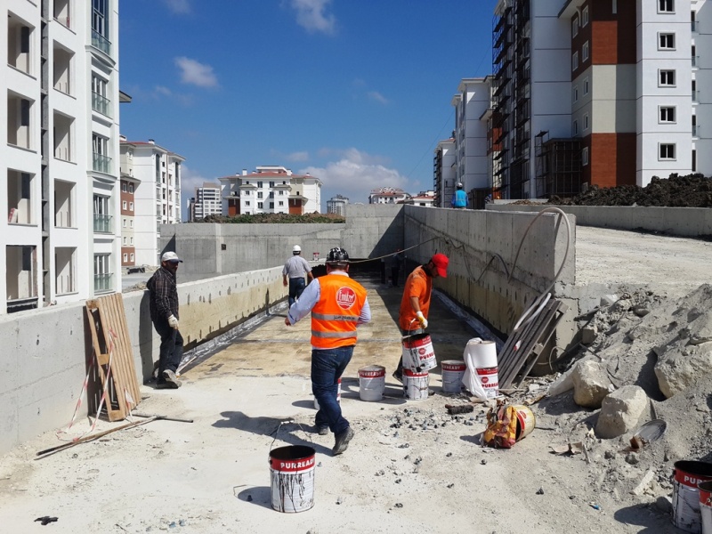 Proje dahilinde kullanılan Elastokote 2K Bitüm Kauçuk Esaslı likit membranımızdan sonra, otopark üzeri su yalıtımda da değerli yüklenicilerimiz, Emülzer Purready B - Bitüm Poliüretan Esaslı Tek Bileşenli likit membranımızı tercih etmişlerdir.